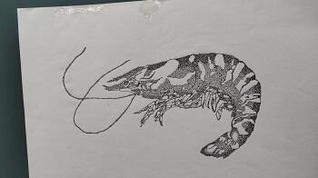 点描とは、鉛筆またはボールペンで点を打ち、強弱で濃淡をだして魚を描いていく絵のことを言います。