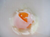 卵黄のタンパク質は60~65℃で凝固し、卵白は70~80℃で凝集するので卵黄のみ凝固し、卵白は完全に凝固しない温泉卵ができあがることを学びました。