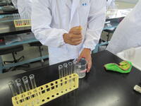 1年生の食品化学の授業では、1学期に食品化学とは何なのかを座学で学び、実験操作を体験しました。