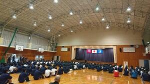 続いて行われた終業式では、鬼塚校長が駒澤大学附属苫小牧高等学校・野球部の冬季練習や、女子マラソン・高橋尚子さんの座右の銘などを紹介し「マリン祭や長距離走大会、修学旅行など行事も多かった2学期。周りに流されたりしなかっただろうか。高校生活は社会に出て活躍する準備の時期。冬休みは、自分を見直す機会にしてほしい。1月9日、全員で始業式を迎えましょう。」とあいさつしました。