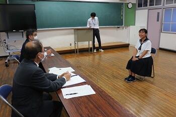 7つの会場に分かれて個人面接を行い、面接終了後にはアドバイスをいただきました。自分の思い通りに受け答えができた生徒、練習通りにはいかずに悔しがる生徒などさまざまでしたが、しっかり準備をして本番に臨みます。西天草ロータリークラブのみなさま、ありがとうございました。