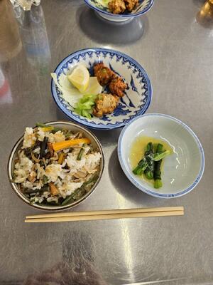 老人クラブの方々と、生活科学科3年生で山菜おこわ・魚のすり身揚げ・ひと文字のぐるぐるを作りました!