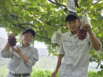 果樹専攻生2名で巨峰の収穫と出荷調整を行いました。