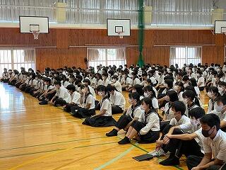 また、3年生の進路決定に向けては、「これまで積み重ねてきたことを活かし、これから準備して自分の力をいかに発揮するかが大切です。」と述べられました。そして、最後に2学期は1人1人何に本気で取り組むかを明確にし、何事も前向きにとらえ、生徒1人1人が充実した学校生活になるようにしてくださいと講話されました。
