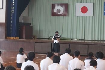 最後に代表生徒が「卒業後の進路に向け、各学年の立場で思いを新たにすることができました」とお礼の言葉を述べました。