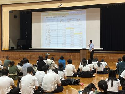 講演は、命と生き方についてのお話でした。「人の誕生はとても奇跡的なこと。尊い命を大切にし、自分に自信と誇りを持ってほしい。妊娠や出産について正しく理解し、自分のことも人のことも大切に行動してほしい。また、一人で抱え込まず、さまざまな相談機関や専門機関を利用してほしい。」とお話されました。