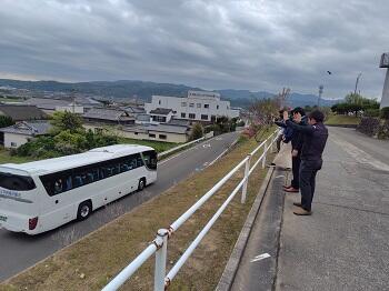 | 出発を前にリラックスした表情です!(^^)! | 先生方がお見送りしてくださいました!! |