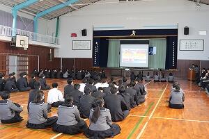 生徒会長が「これから始まる高校生活に対して期待や希望を持っているのと同時に慣れない環境に不安や悩みもあるでしょう。新たな人間関係の中で、新しい知識を学び、新たな自分を発見してください。県内唯一の水産系学科を有する学校として、日本の未来を担う我らの3年間は価値のあるものだと信じています。不安や疑問はいつでも先輩や先生方に相談してください。」と歓迎の言葉を贈りました。