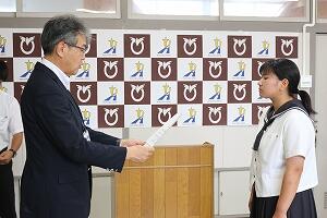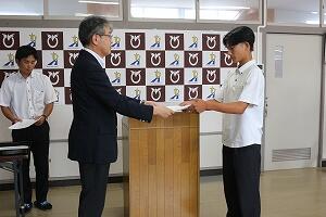 表彰式では、九州地区生徒意見体験発表大会で最優秀賞を受賞した生徒が表彰されました。