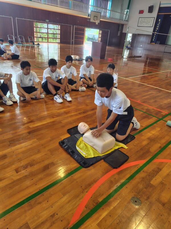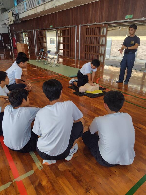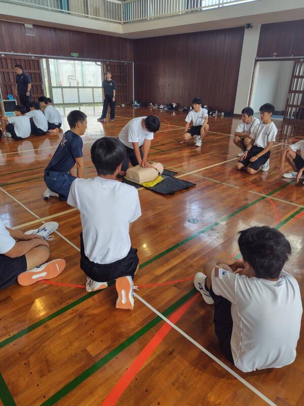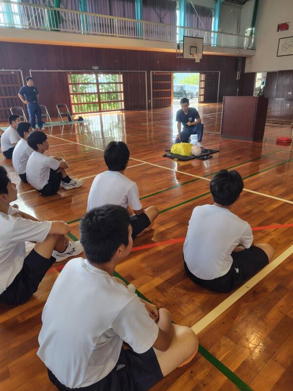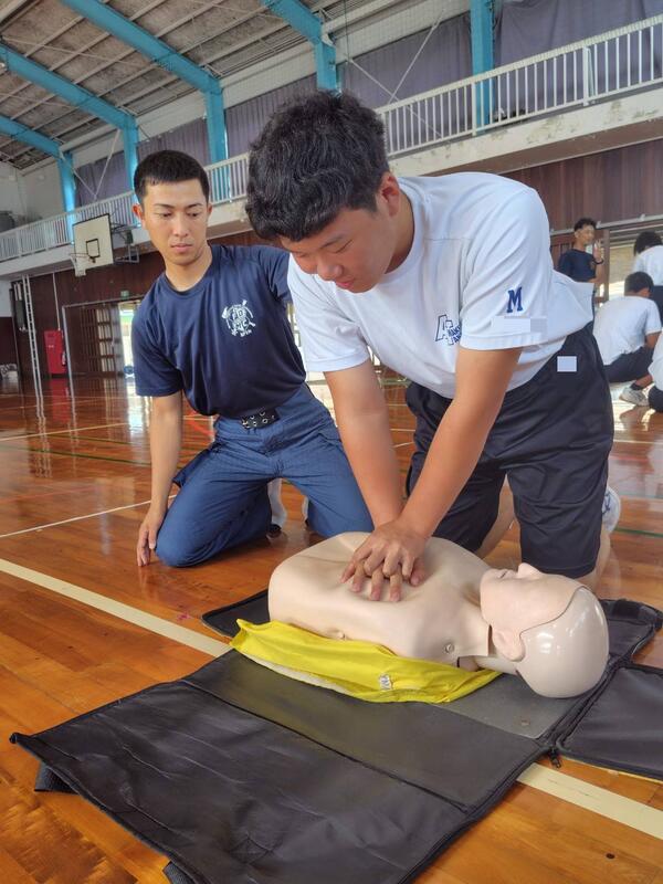 マリン校舎の1年生が救急救命講習を受講し、緊急時の対応方法やAEDの使い方、心肺蘇生など、命を守るための知識と技術を学びました。
