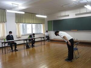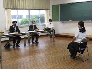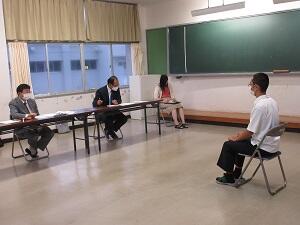 まもなく始まる就職試験を前に、放課後、西天草ロータリークラブによる就職模擬面接を実施しました。