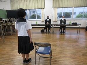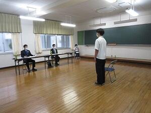 5会場で12名の生徒が個人面接を受け、1人ずつアドバイスをいただきました。いただいたアドバイスを、熱心にメモを取っていました。生徒たちは「とても緊張した」「今日、できなかったところは本番までに改善したい」などと感想を述べていました。当日までしっかり準備をしていきます。西天草ロータリークラブのみなさま、ありがとうございました。