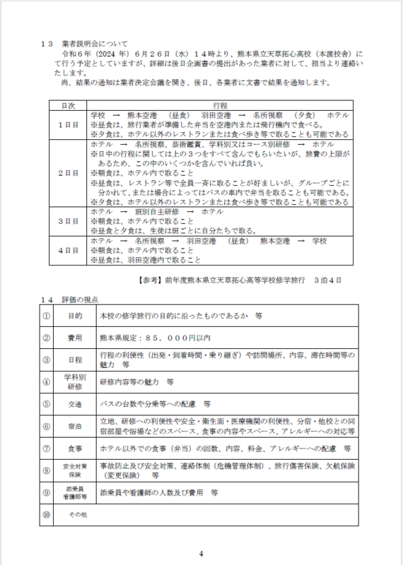 令和7年度(2024年度)熊本拓心高等学校修学旅行業者依頼について(公募依頼)