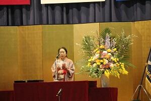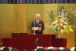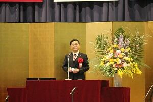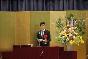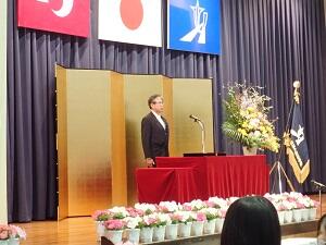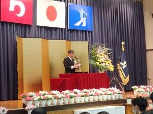 鬼塚校長が「新型コロナウイルス感染症の制限下でも、さまざまな工夫で乗り切った。予測困難の時代でも、ワイルドダック(野生の鴨)のように自ら考えて動き、それぞれの翼を大きく広げて羽ばたいてほしい」と式辞を述べました。〈※日本IBM理念 参照〉