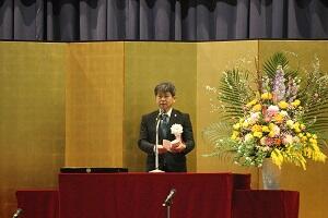 続いて卒業生2名が「『勉強すること』の意味に気付き、周囲の人と協同することの大切さに気付いた3年間。思い通りにいかない時も、『今できること』・『今しかできないこと』を見つけ乗り越えることができた。友人や家族、先生方の支えに感謝し、次の進路で頑張りたい。必ず親孝行したい。」と答辞を述べました。