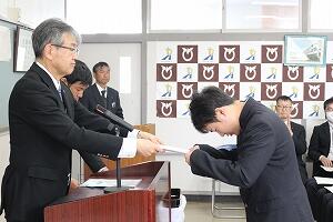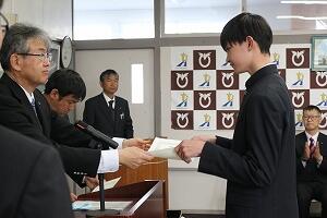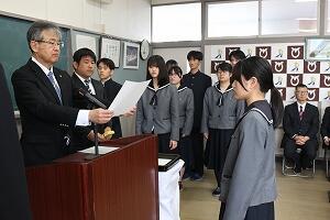 はじめに行われた表彰式では、部活動や検定、1か年皆勤賞、1か年成績優秀賞など延べ34名が表彰を受けました。日々の積み重ねが形になりました。