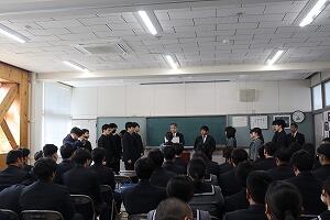 終業式では、水村校長が「今年度を振り返り、一人一人がそれぞれのスピードで成長を感じた一年になったのではないか。これからは未来への視点を持ち、春休みは新しい学年への準備をする期間にしてほしい。また、『三方よし』(近江商人の考え方)の言葉を贈り、自分・相手・第三者(周囲)の人への思いやりを日常生活や学校生活に活かしてほしい。」とあいさつしました。