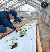 【本渡校舎】生物生産科 トマトの種まき 投稿日時 : 03/23 投稿者1 カテゴリ:【本渡校舎】授業 野菜専攻生が、トマトの定植を行いました。 2月に種をまいたトマトはの定植のポイントは、浅植えにすることと、栽培管理のために花の向きをそろえて植えることです。 ミニトマトが4品種、中玉トマト1品種、計5品種の栽培を行います。 {{options.likeCount}} {{options.likeCount}}