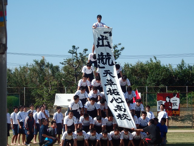 マスゲームでは航海中の熊本丸を表現 8段ピラミッドも無事に完成