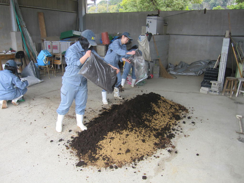 生物生産科ではより深く学ぶ為、「畜産」「果樹」「野菜」「草花」の四つ専攻に分かれて授業が展開されます。今日から専攻別で授業が始まり「草花」ではシクラメンの鉢上げ用の土を作りました。