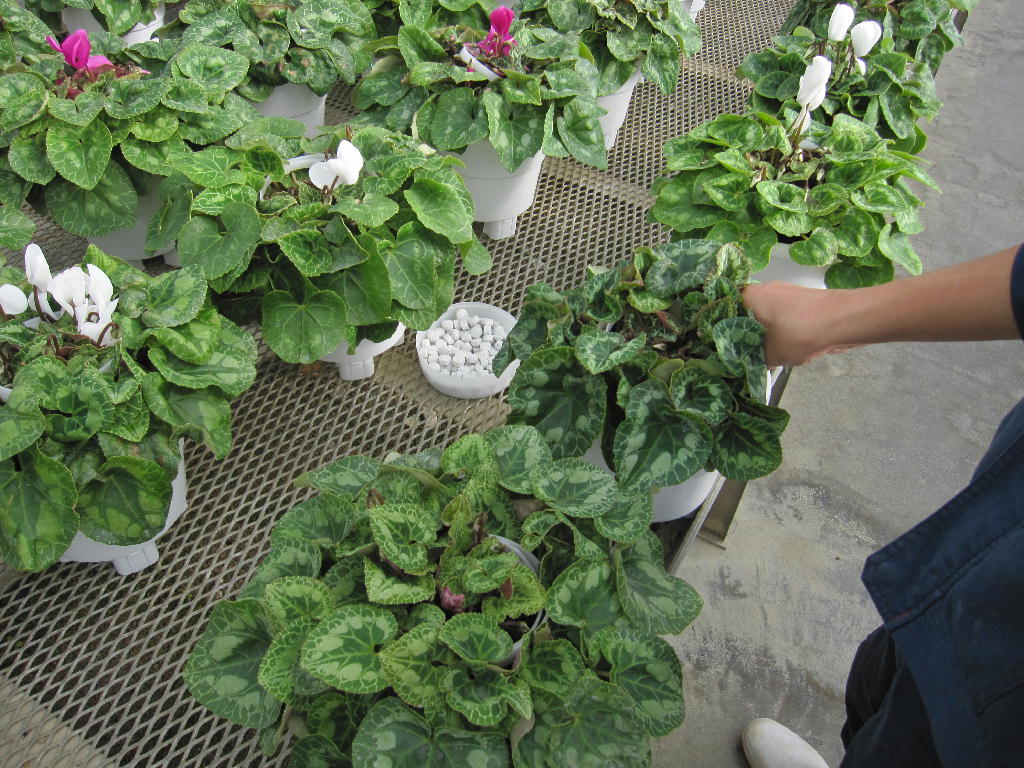 花も咲いてきて、温室内に入るとシクラメンの良いにおいが充満しています!!
