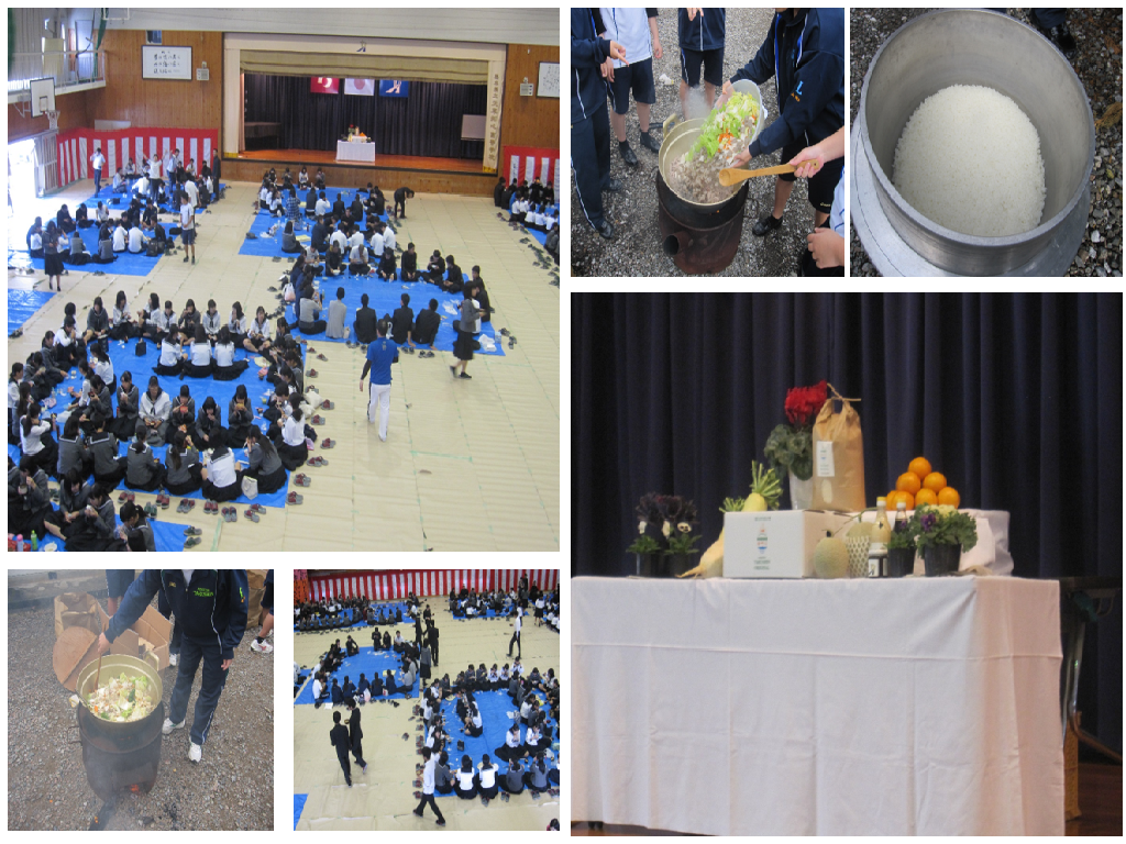 10日(金)は収穫感謝祭でした。豚汁とおにぎりをクラス毎に調理し、みんなで美味しくいただきました。