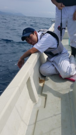 大物をどんどん釣り上げる中、船酔いでダウンする生徒も・・・