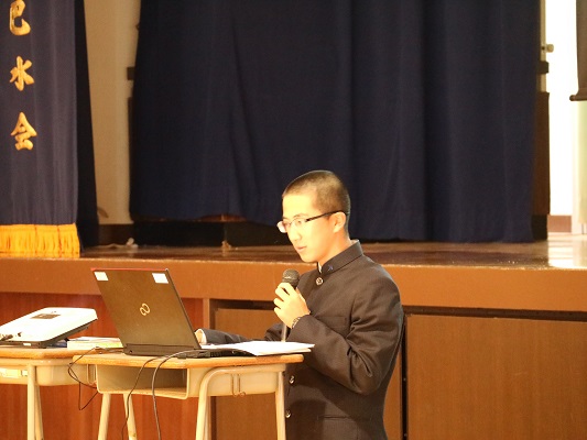 全校生徒の前での報告は緊張します… 食べたものもしっかり報告
