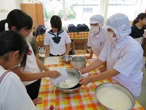 うちわ作り(普通科総合コース) 食品加工体験(海洋科学科・栽培食品コース食品系)