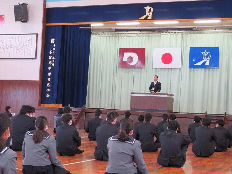 本日新年度が始まりました。体育館で行われた行事には、生徒間の距離を十分に取り、
