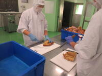 《ロース肉洗い》 《ロース肉乾燥中》 《カット》