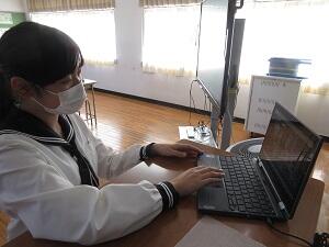 普通科総合コースの1・2・3年生は、苓北支援学校とのオンライン交流を行いました。今回は、マリン祭で展示する「交流の木」を制作しました。事前に「交流の木」の葉を手形で作り、本校生が手形を貼る場所のくじを引き、支援学校の生徒のみなさんが手形を貼り付ける作業をしました。作業の途中で、好きなアニメなど自己紹介をして交流を深めました。