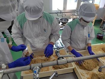 今回使用した「こっぱ」は、昨年度に富岡小学校の児童と本校生徒が共同で仕込んだもので、地域との継続的な交流を生かした実習となりました。