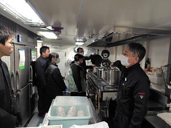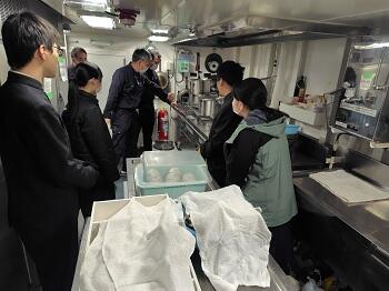 来月には、熊本丸の船内調理施設を使用した調理実習を予定しており、今回の見学はその事前学習として位置付けられています。