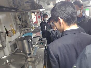 船内の調理施設や設備を実際に見学することで、船上という限られた環境で調理を行う船舶料理士の役割や仕事の大変さについて理解を深めました。