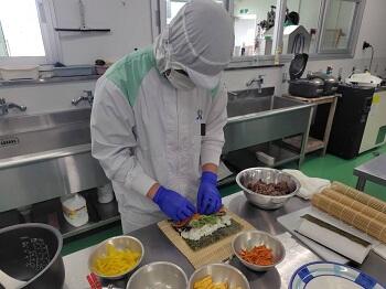 食品系では、3年生最後の実習として、自分で調理内容を決めて料理に取り組む「自由調理課題実習」を実施しました。今回のテーマは「世界の料理」とし、キンパやシュウマイ、ポトフ、ヤンニョムチキンなど、各自が選んだ多様な料理を制作しました。これまでの実習で培ってきた調理技術や段取り力を生かし、完成度の高い料理を仕上げる姿が見られました。