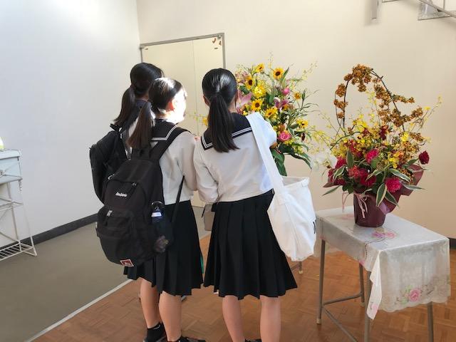 この取組みについて、天草広域本部の農業普及振興課に話したところ、「天草広域本部内で10月から熊本県産の花材を用いたフラワーアレンジメントの展示が始まります。展示後の花材を是非活用してください!」と教材提供を提案していただきました。