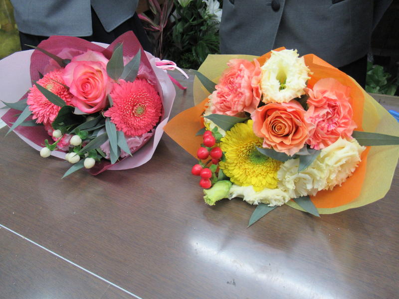 提供していただいた花材で、最初のフラワーアレンジメント学習を行いました。農業普及振興課に感謝です。