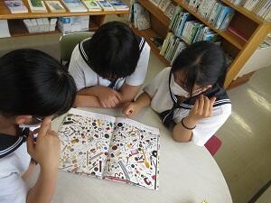 1枚目は「天草の昭和」について興味津々の2人。写真を見て驚きの声を上げながら、今昔を語り合っていました。2枚目は、自分のお目当ての本を借りた後に「ミッケ!」を楽しむ3人。久々のミッケに盛り上がっていました。