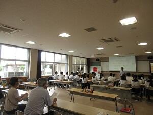 本渡校舎を会場に天草地区生徒図書委員研修会が開かれ、天草地区の図書委員の生徒・教職員約40名が参加しました。本校からは、本渡校舎の図書委員8名、マリン校舎のメディア委員(図書部門)3名が参加しました。本渡校舎の生徒は、会場校として準備・運営に携わりました。