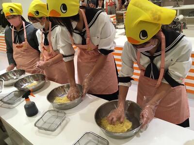 平岡調理・製菓専門学校より2名の講師の先生をお迎えして行われました。専門学校の先生の製菓理論に基づいた技と、わかりやすい解説で、生徒は楽しく技術を習得することができました。他にもデモンストレーションとして、フォンダン・ショコラの試食もありおいしく、充実した講習となりました。
