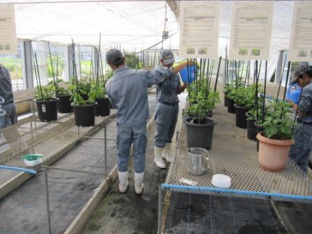 説明を受けて理解したら、各自で「わき芽」を取って行きます。
