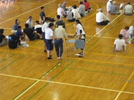 体育館に避難後は、講演がありその中で「自助」自分の命を守る、次に「共助」みんなで助け合う、そして「公助」共助で足りないところを公的機関が補うという話がありました。また、「日頃からのおつき合い」が大切で「まちづくり」や「地域コミュニティーづくり」が重要です。もしも災害があった場合、避難場所では「初期は誰かがリーダー役を!」しなければなりません。そのためにも「日頃からのおつき合い」が大事で「スタートすればみんなで!」協力し助け合う気持ちを持つことが大切です。