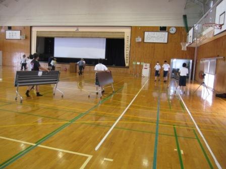 警報が鳴り、生徒・職員は迅速に体育館へ避難しました。