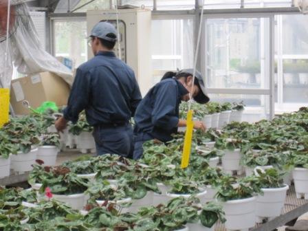 【本渡校舎】シクラメン管理(生物生産科3年)