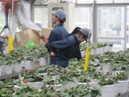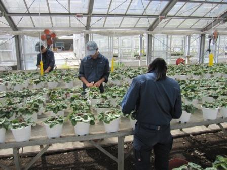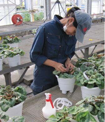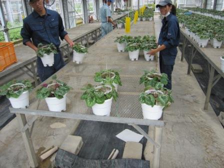 【本渡校舎】シクラメン:ホルモン剤処理 (生物生産科3年)