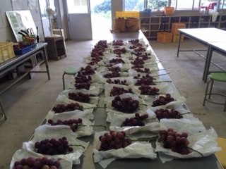 今日、ブドウの出荷調整を行いました。調整するたびに、生徒達は早く丁寧に行えるようになって、日々成長しているなと感じます。