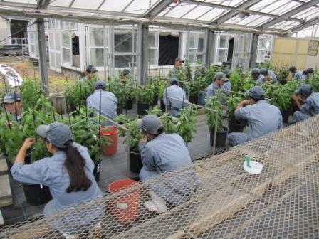 生徒「先生!!わき芽取りと誘引出来ました。確認して下さい」