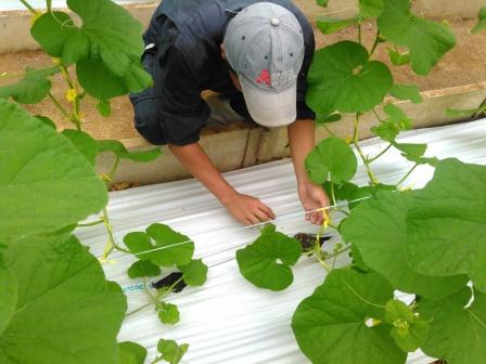 【本渡校舎】メロンの袋かけ (生物生産科3年)