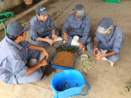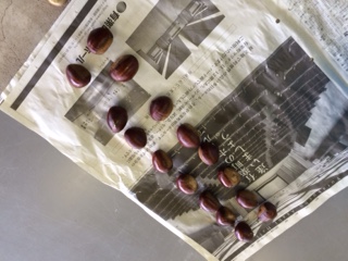 きゅう果(いが)から取り出し、出荷調整していきます。取り出すのに「いが」があって果実を取り出すのは大変ですが生徒たちは器用に取り出しています。